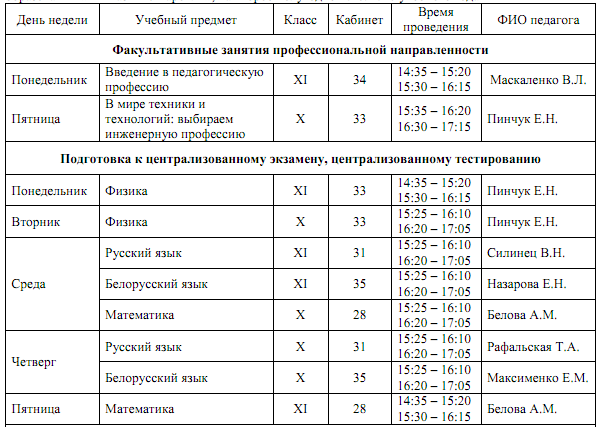 межшкольных факультативных занятий, которые проводятся на базе государственного учреждения образования «Гимназия г. Наровли», на второе полугодие 2025/2026 учебного года